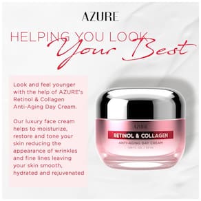 Apresentamos o Creme Facial de Dia AZURE com Retinol e Colágeno, um hidratante anti-idade projetado para restaurar e hidratar a pele, reduzindo visivelmente linhas finas e uniformizando o tom da pele. Com uma fórmula de longa duração, este creme proporciona uma experiência de cuidados que deixa sua pele suave, hidratada e rejuvenescida.