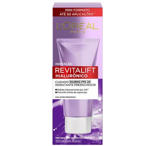 O Revitalift Hialurônico Diurno, agora em um novo mini-formato, é um creme facial com ação antirrugas. Sua fórmula é ideal para uso durante o dia, com FPS 20, auxilia na proteção da pele contra o foto envelhecimento. Com Ácido Hialurônico puro, preenche as linhas de expressão e hidrata intensamente por 24h. Indicado para todos os tipos de pele, sua textura leve pode ser aplicada todos os dias pela maNhã. Testado com dermatologistas.