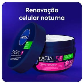 Creme Facial Nivea Noturno 100g - Informações Importantes NIVEA Creme Facial Noturno possui fórmula leve com vitamina B5 que auxilia a renovação celular e hidratada a pele profundamente, sem deixar s