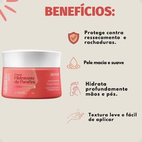 Perfeito para a hidratação diária de mãos, pés e corpo, combatendo o ressecamento.