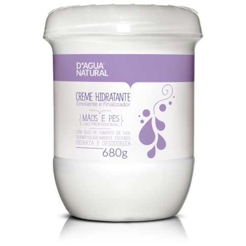 A combinação do óleo de semente de uva, que oferece uma profunda hidratação, com ceras emolientes, que amaciam e facilitam a renovação da pele, fez nascer este Creme Hidratante Mãos e Pés Dagua Natural. Um grande aliado das manicures e pedicures, pois atua de três maneiras: como hidratante de mãos e pés, como emoliente para cutículas e como finalizador nutritivo para a pele.