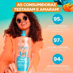 O Creme Para Pentear Elseve Cachos Longos Dos Sonhos 3 Em 1 é ideal para nutrir e selar os cachos até as pontas para salvar os últimos 3 cm dos seus cabelos. Garante definição dos sonhos como um creme para pentear, transformação dos sonhos como um tratamento intensivo e desembaraço como um super-condicionador, tudo isso graças a sua poderosa fórmula 3 em 1. Possui fórmula enriquecida com Óleo de Rícino e Ácido Hialurônico. Juntos esses ativos nutrem intensamente os fios do comprimento as pontas, salvando os últimos 3 centímetros dos seus cabelos.