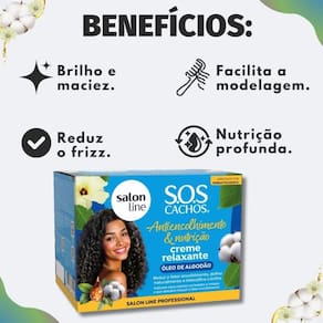 O Creme Relaxante Salon Line Sos Cachos Óleo de Algodão é a solução ideal para quem busca cachos definidos, nutridos e com um aspecto naturalmente relaxado. Desenvolvido pela renomada marca SALON LINE, este produto transforma seus cachos, proporcionando maciez, brilho e controle do frizz. Imagine ter cachos impecáveis todos os dias, sem esforço! Este creme é perfeito para quem deseja realçar a beleza natural dos seus cachos com um toque de cuidado profissional.