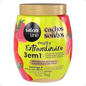 Creme 3 em 1 Multy Extraordinário Morango e Óleo de MacadâmiaO Creme de Tratamento 3 em 1 intenso, é super condicionador e creme para pentear. Ele proporciona tratamento nutritivo reparador intensivo da raiz às pontas e definição com efeito volumoso. Além de sedosidade e ação antifrizz. Ideal para cabelos cacheados e crespos desidratados e sem volume. Para + de 12 anos. Fragrância frutal. Não testado em animais. Vegano..Principais AtivosExtrato de morango: aliado da hidratação dos cabelos, proporciona fios macios e brilhosos.Óleo de macadâmia: proporciona brilho intenso e maciez.Queratina vegetal: restaura e hidrata, auxiliando na reconstrução dos fios.Ceramidas vegetais: Fortalece e protege os fios, retendo a hidratação e promovendo um cabelo mais saudável e resistente..Modo de UsoCreme de tratamento: Com os cabelos limpos e úmidos, aplique o produto mecha a mecha, enluvando os fios da raiz até as pontas. Deixe agir por 5 minutos e enxágue bem.Condicionador: Com os cabelos limpos e úmidos, aplique o produto massageando os fios do comprimento até as pontas. Enxágue bem.Creme para pentear: Com os cabelos limpos e úmidos, aplique o produto mecha a mecha, uniformemente, no comprimento e nas pontas. Desembarace os fios com um pente de dentes largos e amasse-os iniciando movimento das pontas até à raiz. A aplicação ideal dependerá da quantidade e do comprimento dos fios. NÃO ENXÁGUE. Ean: 7908458326228