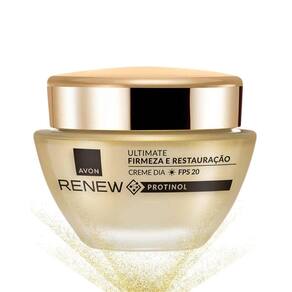 Creme ultimate renew dia fps 20 firmeza e restauração 50g Renew ultimate creme dia 50g O creme facial renew ultimate dia firmeza 45+ é potencializado por protinol tm + phloretin para uma pele firme, suave e radiante. Desenvolvido para restaurar a produção de colágeno da pele. Instantaneamente, a pele interrompe a perda de colágeno e começa a produzir mais para restaurar até 83% em apenas 48 horas. Rendimento de até 93 aplicações. Uso indicado a partir de 18 anos, para homens e mulheres. Dermatologicamente testado. Marca: Não Informado