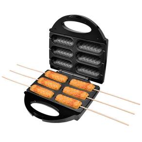 Características: Modelo: Six Prepara: Crepes doces e salgados, queijo coalho e hot dog no palito Capacidade: Até 6 crepes por vez Potência: 850 Watts Frequência: 60 Hz Material: Metal e baquelite Chapas: Com revestimento antiaderente Aquecimento: Rápido Luz indicadora de aquecimento: Sim Luz indicadora de funcionamento: Sim Trava de fechamento: Sim Rebaixo para apoio de palitos: Sim Base: Antiderrapante Pés: Antideslizantes Certificado pelo Inmetro: OCP0040