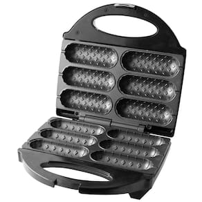 Prepara até 6 crepes ou hot dogs simultaneamente, chapas com revestimento antiaderente, acompanha manual de receitas.Porta-fio