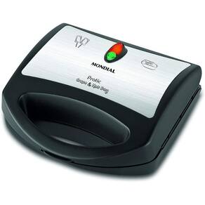 SimMais sabor e diversão para seus momentos! Com a Crepeira Pratic Mondial, você prepara 6 crepes de uma só vez, além de outras delícias como pão de queijo, salsicha no palito, pizza no palito, queijo coalho e muito mais. Com 850W de potência, ela garante agilidade no preparo, possui chapas antiaderentes para evitar que os alimentos grudem e um design em inox que traz beleza e durabilidade para sua cozinha.