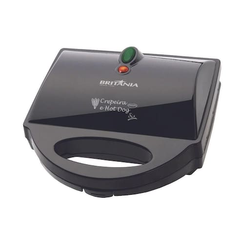 Crepeira Britânia Six para 6 crepes, com chapas antiaderentes, base antiderrapante e trava de fechamento. Ideal para preparar crepes doces e salgados, queijo coalho e hot dog no palito.Porta-fio