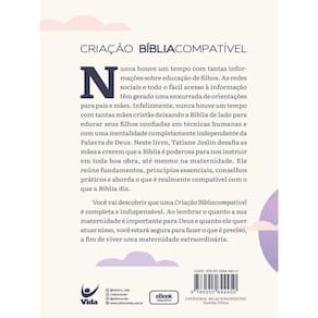 Nunca houve um tempo com tantas informações sobre educação de filhos. As redes sociais e todo o fácil acesso à informação têm gerado uma enxurrada de rientações para pais e mães. Infelizmente, nunca houve um tempo com tantas mães cristãs deixando a Bíblia de lado para educar seus filhos confiadas em técnicas humanas e com uma mentalidade completamente independente da Palavra de Deus. Neste livro, Tatiane Joslin desafia as mães a crerem que a Bíblia é poderosa para nos instruir em toda boa obra, até mesmo na maternidade. Ela reúne fundamentos, princípios essenciais, conselhos práticos e aborda o que é realmente compatível com o que a Bíblia diz.Você vai descobrir que uma Criação Bíbliacompatível é completa e indispensável. Ao lembrar o quanto a sua maternidade é importante para Deus e quanto ele quer atuar nisso, você estará segura para fazer o que é preciso, a fim de viver uma maternidade extraordinária.