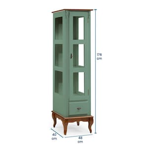 A Cristaleira Torre 1 Porta 2 Prateleiras e 1 Gaveta Luis XV 60111 Linz Móveis é produzida com matéria-prima de alta qualidade, esbanjando requinte e elegância em um só produto. Seu design sofisticado irá armazenar confortavelmente todos os seus pertences de uma maneira bem-posta. Além disso a cristaleira retro Luis XV possui 1 gaveta e 2 prateleiras, permitindo armazenar todas as suas necessidades de forma organizada. A porta e as laterais são combinadas com vidro transparente, assegurando que seus produtos fiquem protegidos e evidenciados! Com estrutura produzida em Madeira Maciça para tons amadeirado em verniz e MDF nos tons coloridos com acabamento laca, materiais de alta resistência e qualidade, possibilitam que você desfrute dessa mobília por muito tempo, puxadores Zamac e gaveta com corrediças telescópicas, resultam em um móvel com mais durabilidade e resistência.