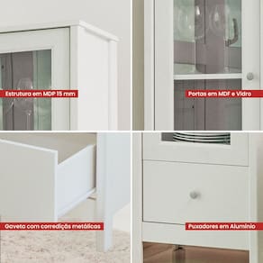 Modelo: Cristaleira 1 Porta Vidro 1 Gaveta 180x43 cm E962 Dtall