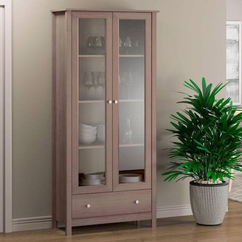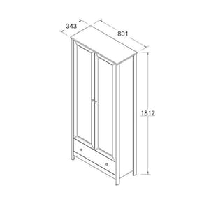 CARACTERÍSTICAS - Produzido em MDP de 15 mm com revestimento em pintura UV. - Portas com molduras em MDF e vidro. - Possui prateleiras que suportam até 20 kg. - Possui 1 gaveta com corrediças metálicas. - Puxadores em alumínio.