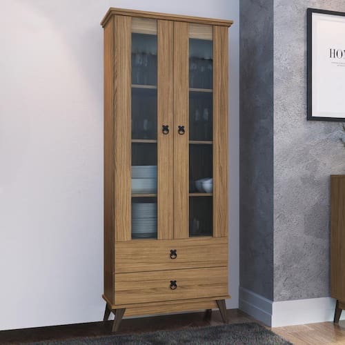 O(a) Cristaleira 2 Portas 2 Gavetas Cr322 Naturalle - Decibal Móveis é produzido em MDP na escala de brilho Fosco, e possui um grau de dificuldade de montagem: Médio.