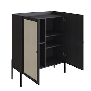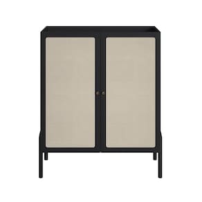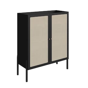 Cristaleira 2 Portas 93cm Palhinha Pé Madeira Oslo Nero/Preto
