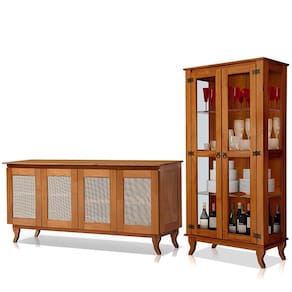 Acompanha o produto: - 1 x Cristaleira de Madeira Maciça 2 Portas de Vidro Luma - 1 x Buffet Aparador de Madeira 4 Portas de Tela Dalton - Manual de Montagem - Acessórios de Montagem