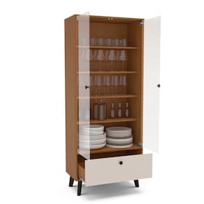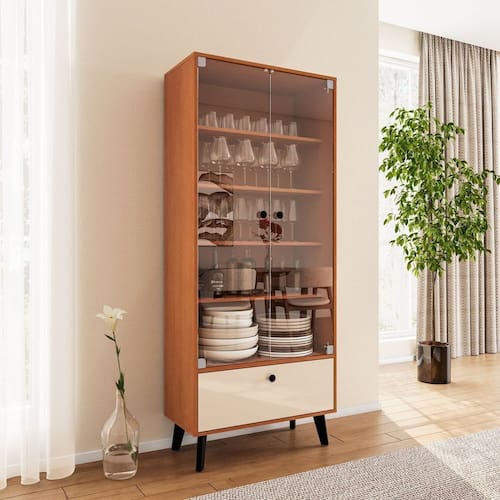 A Cristaleira 2 Portas de Vidro com 1 Gaveta Londres é a peça que vai transformar seu espaço no ambiente mais charmoso da casa, unindo elegância e funcionalidade. Com 75 cm de largura, 178 cm de altura e 36 cm de profundidade, ela conta com 5 prateleiras ideais para organizar e expor copos, taças, jarras e pratos, mantendo tudo ao alcance das mãos e de forma sofisticada. Suas portas de vidro resistentes valorizam a decoração, enquanto os puxadores estilo ponto e os 4 pés conferem um toque moderno e leve ao móvel. A gaveta com corrediça metálica simples oferece praticidade no dia a dia, e a pintura UV garante alta durabilidade, proteção contra riscos e um acabamento impecável por muito mais tempo. Uma peça versátil para deixar seu lar mais bonito e funcional. Acabamento da Porta: Cristal Acabamento da Prateleira: Pintura UV Altura dos Pés: 17 cm Ambiente Principal: Sala de Jantar codigo_ean: 7900288212436 Complexidade da Montagem: Média: pode ser montado por mais de uma pessoa e/ou necessite de maior conhecimento para montagem Cor: Creme/Freijó Cor da Porta: Transparente Cor do Produto: Creme/Freijó Cor dos Pés: Preto Escala de Brilho: Semi-Brilho Escala de Brilho da Porta: Brilhante Espessura do Vidro: 3 mm Itens Inclusos: 1 Critaleira, Kit Ferragens, Manual de Montagem e Termo de Garantia Linha ou Coleção: Londres Manual de Montagem e Instalação: https://product-hub-prd.madeiramadeira.com.br/278371781/documents/42341cef-6896-480a-a5fb-729b51e85afd3131217622417550202140128.pdf Marca: Politorno Material da Porta: Vidro Material da Prateleira: MDP Material Principal: MDP Necessita Montagem: Sim Origem do Produto: Nacional Peso: 38,3 kg Peso Máximo por Gaveta: 3 kg Peso Máximo por Prateleira: 3 kg Porta Taças: Não Possui Adega: Não Possui Espelho: Não Possui Gavetas: Sim Possui iluminação: Não Possui Nicho: Não Possui Pés: 04 Possui Portas: Sim Possui Prateleiras: Sim Possui Vidro: Sim Quantidade de Gavetas: 01 Gaveta Quantidade de Prateleiras: 04 Prateleiras Recomendações de Uso, Manutenção e Limpeza: Utilize um pano macio umedecido com água e sabão neutro, seguido de pano seco. Não utilize produtos químicos ou abrasivos para limpeza, pois estes danificam o revestimento do móvel. Sapatas Niveladoras: Sim Sistema de Montagem: Cavilha, Parafuso, Minifix e prego. Suporta Até (kg): 20 kg Tipo de Corrediça da Gaveta: Metálica Simples Tipo de Dobradiça/Corrediça da Porta: Metálica Tipo de Porta: Bater Tipo de Puxador da Porta: Externo Marca: Não Informado
