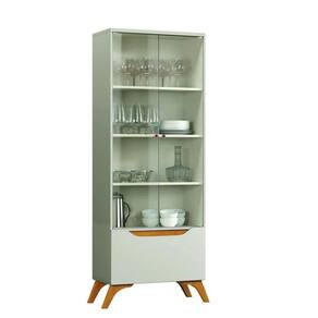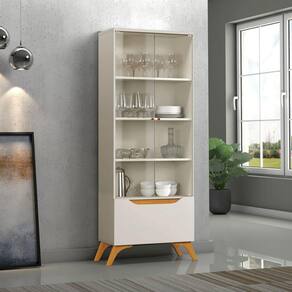 Cristaleira 2 Portas de Vidro e 1 Gaveta - Atenas-Off White - Mavau Móveis