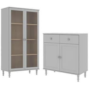Cristaleira 2 Portas E Aparador 2 Gavetas 2 Portas Cinza Dtall Cinza