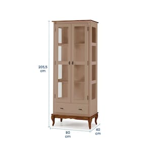 As 2 portas e laterais com detalhes em vidro proporcionam uma visão encantadora dos itens armazenados.