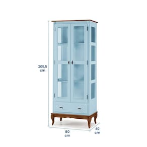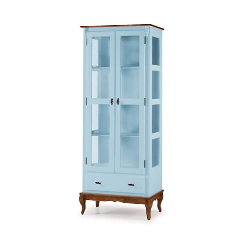 Cristaleira 2 Portas e Laterais em Vidro 1 Gaveta Pés Luis XV Sevilha - Azul Bebê/ Imbuia