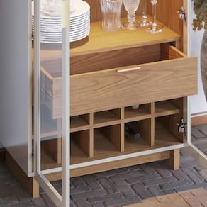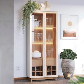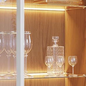 Com design minimalista, a Cristaleira Guanabara é uma ótima escolha para compor salas de estar ou jantar. Desenvolvida para armazenar e organizar utensílios de louças, possui duas prateleiras de vidro, iluminadas por fitas de Led, que são ideais para destacar e valorizar aquela coleção de taças ou copos especiais. Além disso, possui uma adega com espaço para 10 garrafas e uma gaveta interna para guardar travessas e aparelhos de jantar. Seu destaque fica por conta de suas portas em vidro, estilo retrô, que permitem que todo conteúdo interno fique à vista, garantindo assim, um toque especial ao móvel e maior praticidade para o dia a dia.
