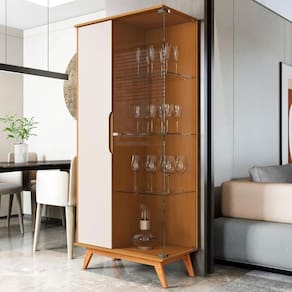 A Cristaleira é um produto elegante com excelente espaço interno, e também tem o seu charme na lateral toda em vidro.