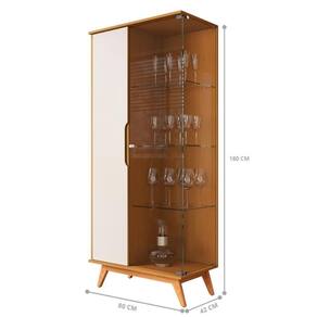 Ela conta com 2 portas sendo 1 em maeira e 1 em vidro, 4 pés e 6 prateleiras.