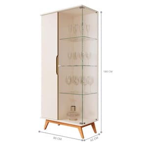 Ela conta com 2 portas sendo 1 em maeira e 1 em vidro, 4 pés e 6 prateleiras.