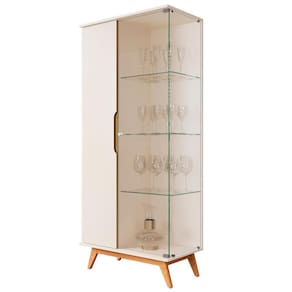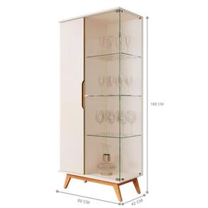 Ela conta com 2 portas sendo 1 em maeira e 1 em vidro, 4 pés e 6 prateleiras.