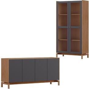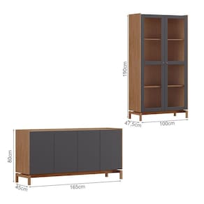 O conjunto Cristaleira e Balcão Buffet une sofisticação, funcionalidade e resistência em peças que se complementam com harmonia. Ambos são produzidos em madeira maciça de pinus de reflorestamento, com acabamento em pintura acetinada PU e UV que valoriza o visual e garante durabilidade. O balcão buffet com 165 cm de largura conta com tampo e frentes de portas e gaveta em MDF, 1 gaveta com corrediças telescópicas e 2 prateleiras internas, sendo ideal para a organização de objetos na sala de jantar. Já a cristaleira, com 100 cm de largura, possui 2 portas com vidro canelado incolor, dobradiças com amortecimento e 3 prateleiras em madeira maciça, perfeita para expor itens com elegância. Ambos os móveis possuem pés flutuantes que conferem um toque moderno ao conjunto. Estes móveis chegarão em sua casa separados em 04 volumes.