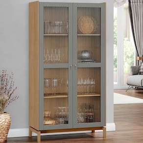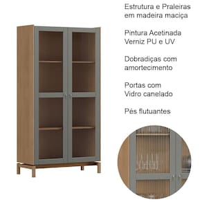 A cristaleira combina elegância e funcionalidade, sendo produzida em madeira maciça de pinus de reflorestamento, com acabamento refinado em pintura acetinada verniz PU e UV para maior durabilidade. Com 100 cm de largura, o design contém 2 portas de vidro canelado incolor, que adicionam sofisticação ao design, enquanto as dobradiças com amortecimento garantem um fechamento suave e silencioso. Os pés flutuantes proporcionam um visual moderno e leve, e as prateleiras em madeira maciça oferecem resistência e praticidade para a organização dos seus itens. Este móvel chegará em sua casa separado em 02 volumes.