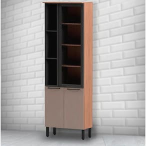 Caracteristicas: Marca: Telasul Modelo: Caiena Tipo: Cristaleira Quantidade de portas: 3 portas Quantidade de prateleiras: 5 prateleiras Tipo de dobradicas: Metalicas Material das portas: MDP e vidro temperado Material dos puxadores: Aluminio Nichos: 3 nichos Pes regulaveis: Sim Acabamento: Pintura UV Escala de brilho: Fosco Peso maximo suportado: 70 kg Sistema de montagem: Parafusos, cavilhas, bucha e prego