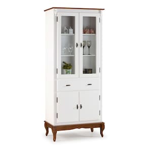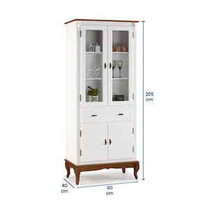 Cristaleira 4 Portas 2 Prateleiras 1 Gaveta e Pés Luiz XV 60308 Linz Móveis - Branco/Imbuia Glazer