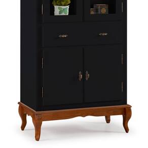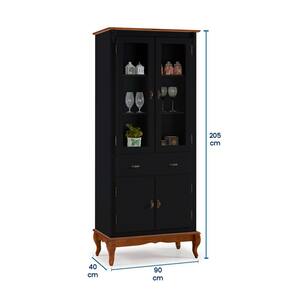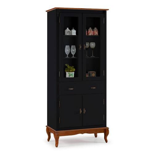 Cristaleira 4 Portas 2 Prateleiras 1 Gaveta e Pés Luiz XV 60308 Linz Móveis - Preto/Imbuia Glazer - Preto