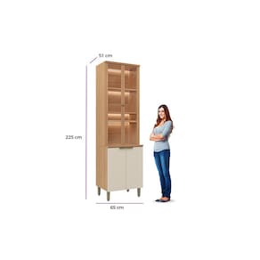 Características: Marca : Linea Brasil Modelo: Selene Material : MDF Porta: 4 portas sendo 2 de vidro Prateleira: 4 em MDF Pé: 4 pés de plástico Puxador: 4 Luminária: 4 Luminária de Led Dobradiça: 10 dobradiças metálicas
