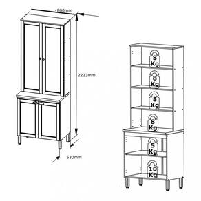 Dimensões: Altura: 223 cm Largura: 80 cm Profundidade: 53 cm Peso: 56,00 kg