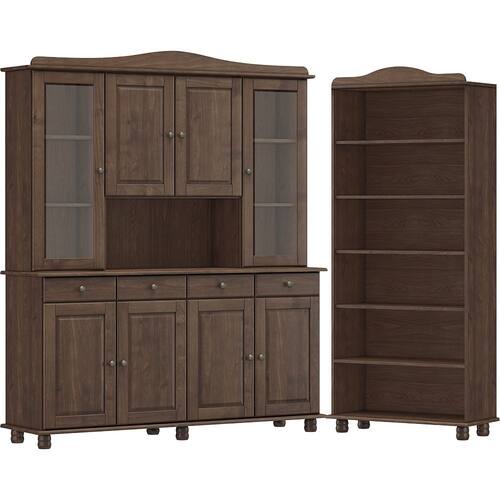 Cristaleira e Estante Livreiro, um conjunto projetado para quem busca móveis que combinam elegância e funcionalidade para complementar sua decoração. Produzido em madeira maciça de pinus de reflorestamento, sua estrutura robusta garante durabilidade e resistência. A Cristaleira de 168,9cm de largura, conta com 08 portas sendo 02 de vidro incolor, que possuem dobradiças com amortecimento. As gavetas com corrediças telescópicas proporcionam abertura suave e máxima praticidade para guardar itens menores, enquanto os puxadores metálicos adicionam um toque moderno ao design clássico do produto. Com amplo espaço para organização, a Estante de 85cm de largura é perfeita para acomodar livros, objetos decorativos ou itens de sua preferência. Ambos os móveis possuem pintura acetinada com verniz PU e UV, que realça a beleza natural da madeira enquanto protege contra desgastes do dia a dia, e pés torneados em madeira maciça que garantem estabilidade e charme artesanal. Estes móveis chegarão em sua casa separados em 04 volumes.