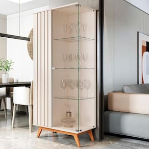 A Cristaleira Açaí, da JB Bechara, é uma peça elegante e sofisticada, perfeita para adicionar charme e funcionalidade à sua sala de jantar ou estar. Com um design moderno e clean, ela combina o acabamento refinado com detalhes que valorizam o ambiente. Fabricada com materiais de alta qualidade, a cristaleira oferece amplo espaço interno com prateleiras de vidro, ideais para armazenar e exibir cristais, louças e objetos decorativos com segurança e estilo. Suas portas de vidro e acabamento impecável garantem um toque de sofisticação e leveza ao espaço. A Cristaleira Açaí é a escolha ideal para quem busca aliar beleza, qualidade e praticidade em um único móvel.
