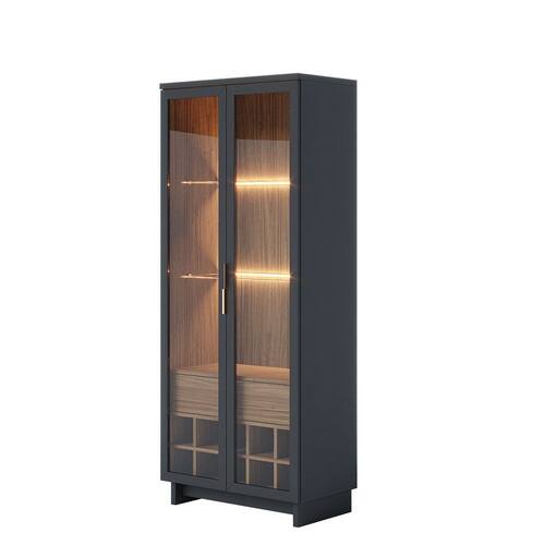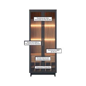 Diferenciais: Design moderno; Portas com centro de vidro emoldurado em MDP; Fita de LED atrás das prateleiras de vidro.