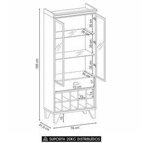 Peso Suportado: Até 5 Kg por prateleira / Até 5 kg na gaveta.