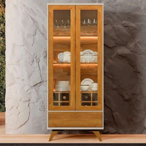 Chegou mais um novo produto na Facilita Decor! A Cristaleira Vitrum!! Uma Cristaleira moderna e sofisticada, um produto perfeito para embelezar seu ambiente. A Cristaleira possui 2 portas de vidro emolduradas, com abertura e fecho ao toque, um produto totalmente moderno. Além de iluminação em Led nas prateleiras, possui também corrediça telescópicas em sua gaveta e uma linda adega para 10 garrafas, incluindo lindos pés de madeira maciça.