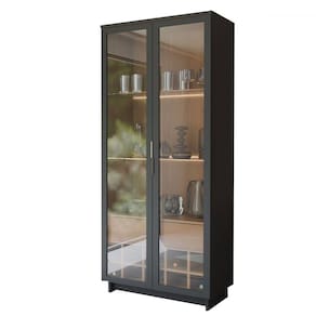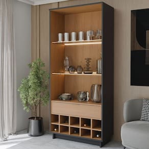 O(a) Cristaleira Afrodite 2 Portas 1 Gaveta Preto Fosco/Noce Milano - Loja é produzido em MDF, MDP e Vidro na escala de brilho Fosco, e possui um grau de dificuldade de montagem: Médio.