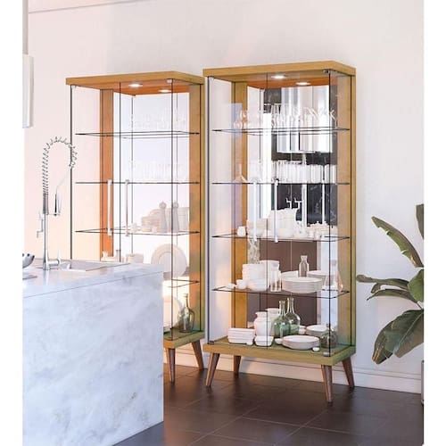 A cristaleira da linha Tifanny é uma peça elegante e funcional, perfeita para destacar suas coleções de cristais e louças. Possui duas portas e laterais em vidro, proporcionando uma visão clara e ampla do interior. Composta por quatro prateleiras em vidro oferece amplo espaço para organizar e exibir seus objetos. Além disso, conta com espelho, dando a sensação de profundidade ao ambiente. Equipada com uma luminária LED proporciona uma luz suave dando um toque de elegância. Os pés em madeira maciça oferecem estabilidade e aparência clássica. Produzido pela Imcal, é desenvolvida em 100% MDP com materiais de alta qualidade garantindo mais durabilidade e prolongando a vida útil do móvel. Combinando praticidade com estilo, a cristaleira é uma escolha sofisticada para complementar seu ambiente. Confira e garanta o seu!