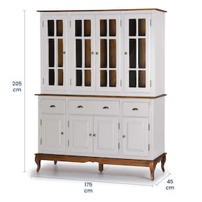 Você anda preocupado com a falta de espaço para armazenar suas louças, copos e taças ou até mesmo seus objetos decorativos? Se sim, com a Cristaleira Arca e Oratório 60806 Linz Móveis você não se preocupará mais. A cristaleira rústica e clássica conta com 8 portas, sendo 4 delas de vidro, oferecendo muito espaço de armazenamento para exibir seus objetos de valor ou decorativos. 3 gavetas adicionais e prateleiras internas garantem ainda mais opções de armazenamento e organização. Além disso, os pés em madeira maciça e verniz conferem à arca um toque de elegância e sofisticação, além de garantir sua estabilidade e durabilidade ao longo do tempo. A peça é produzida em Madeira Maciça para tons amadeirado em verniz e MDF nos tons coloridos com acabamento laca, materiais de alta qualidade e durabilidade que garantem a possibilidade de desfrutar dele por muitos anos, sendo a escolha perfeita para quem busca uma cristaleira clássica e funcional, com espaço suficiente para guardar tudo o que você desejar.