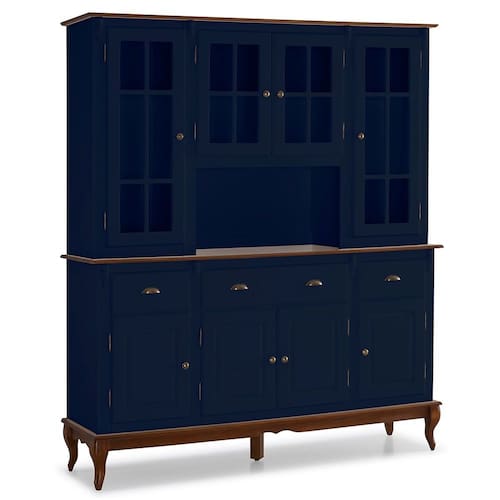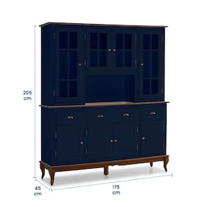 Cristaleira Arca e Oratório Hannover 8 Portas 3 Gavetas com Nicho e Pés Luiz XV-Azul Petróleo/Imbuia