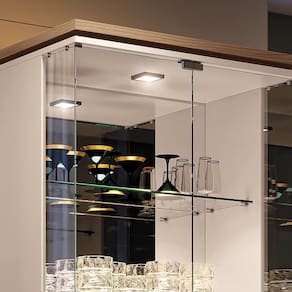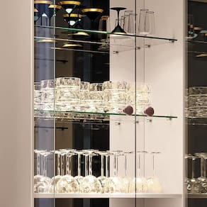 ESPECIFICAÇÕES: Estrutura em MDP e MDF de 25mm e 15mm Pintura UV 2 Portas de vidro 6mm com sistema de fecho magnético Puxadores em poliestireno com acabamento metálico fosco Laterais de vidro fixadas com suportes cromados 2 Prateleiras de vidro 6mm e outra em MDF 15mm Espelhos 3mm ao fundo Luminária LED Dobradiças metálicas Gavetão com corrediças telescópicas Nicho adega embutido com espaço para 6 garrafas