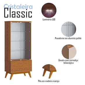 A cristaleira da linha Classic oferece um toque de elegância e funcionalidade para qualquer ambiente. Com duas portas em vidro, exibe seu interior de forma sofisticada. As três prateleiras também em vidro proporcionam amplo espaço para organizar seus objetos. Além disso, possui uma gaveta com corrediça telescópica, garantindo um deslize suave e fácil acesso aos seus pertences. A inclusão de uma luminária LED realça a beleza, criando um ambiente acolhedor. Produzido pela Imcal, é desenvolvido em MDP com materiais de alta qualidade garantindo mais durabilidade e resistência. Combinando estilo com design clássico será a escolha perfeita para quem busca uma peça que una organização e praticidade ao seu ambiente. Confira e garanta o seu!