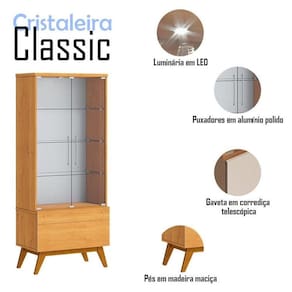 A cristaleira da linha Classic oferece um toque de elegância e funcionalidade para qualquer ambiente. Com duas portas em vidro, exibe seu interior de forma sofisticada. As três prateleiras também em vidro proporcionam amplo espaço para organizar seus objetos. Além disso, possui uma gaveta com corrediça telescópica, garantindo um deslize suave e fácil acesso aos seus pertences. A inclusão de uma luminária LED realça a beleza, criando um ambiente acolhedor. Produzido pela Imcal, é desenvolvido em MDP com materiais de alta qualidade garantindo mais durabilidade e resistência. Combinando estilo com design clássico será a escolha perfeita para quem busca uma peça que una organização e praticidade ao seu ambiente. Confira e garanta o seu!