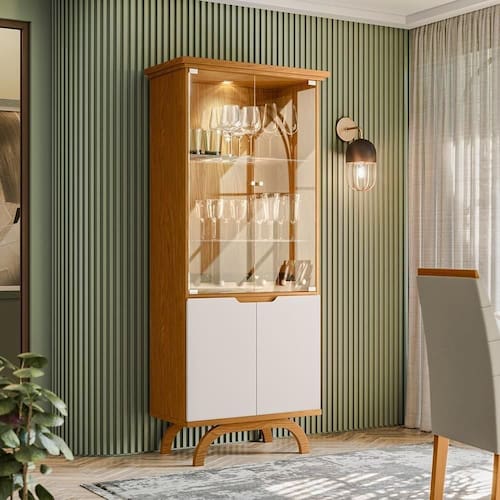 A Cristaleira é um produto elegante com excelente espaço interno, e também fica os destaques para os relevos em cima das portas.